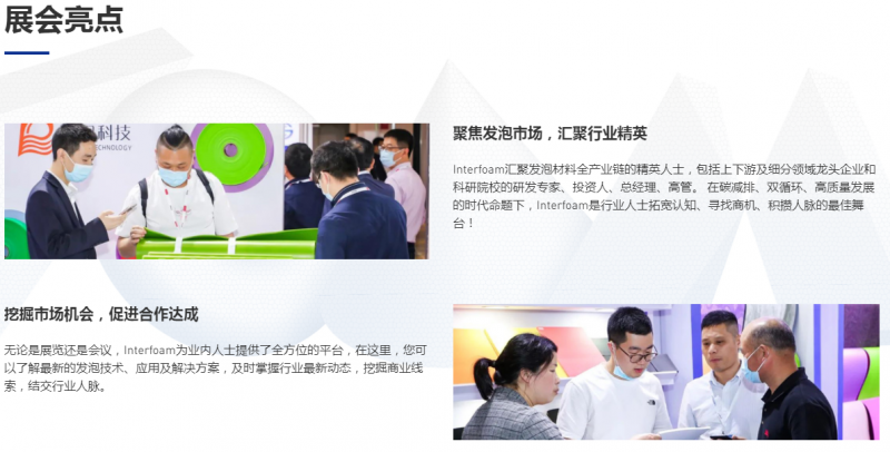 Interfoam上海展将集中展示发泡材料的最新生产技术、设备及发泡材料的新技术、新趋势、新应用等,竭力为发泡材料产业上下游及垂直应用行业打造技术、贸易、品牌展示、学术交流为一体的专业平台,赋能行业可持续发展!