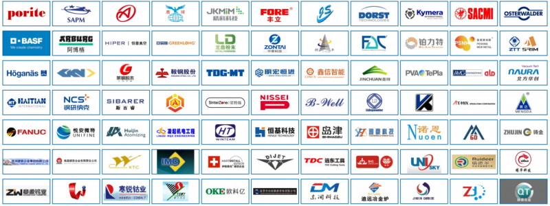 保来得、上汽、安泰、鹰球、精科、丰立、家声、DORST、Kymera、Sacmi 、Osterwalder、巴斯夫、阿博格、恒普、亘易隆、龙鼎、中泰、昶丰、菲德克、铂力特、盘星、中天上材、赫格纳斯、海格纳士、莱钢、鞍钢、天通吉成、明宏恒进、鑫信、金川、PVA、ALD、北方华创、海天、钢研、斯百睿、天智、星特烁、日精、美扬、利德、宏伦、Atmix、萌达、发那科、悦安、慧金、凌起、汇腾、恒基、岛津、雅豪、诺恩、六度、铸金、株硬、南硬、厦钨、IMC、伊斯泰克、黛杰、远东、东亚、天源、瑞德尔、曦华、章源钨业、江钨、寒锐、耀升、欧科亿、自贡硬质合金、东闽、迪远、金信、中铂、群泰等。