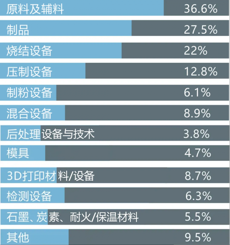 烧结设备、成型设备、制粉设备、检测设备、气氛装置、模具、模架、网带、其他相关设备。