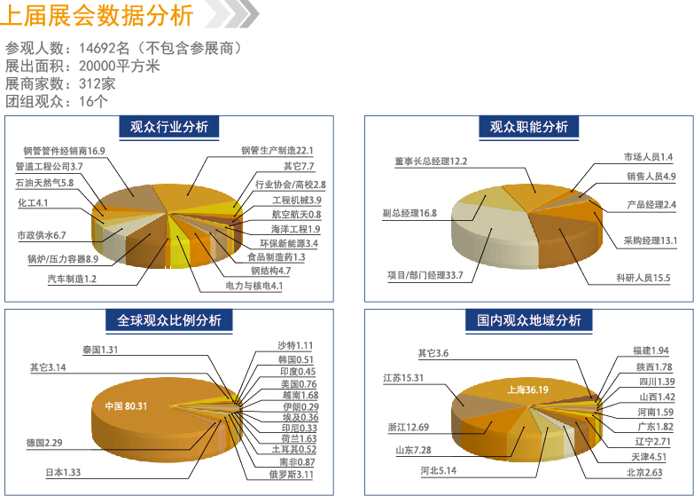 基础设施项目的投资力度增加,以及下游工业产业转型升级加快,对钢管需求量将保持一定量增长。本届展会将针对石油天然气、石化装备、建筑给排水、钢结构、机械制造、电力与核电等应用市场进行细分,展会定向宣传,观众定向邀约。