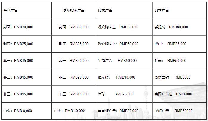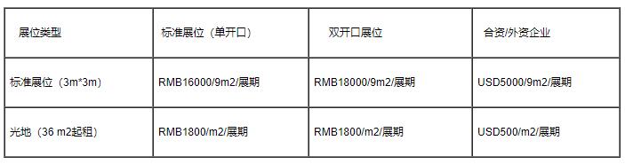 标准展位: (3M×3M)展位(包括三面围板、楣板、一桌二椅、220V电源插座、地毯、清洁费等)。