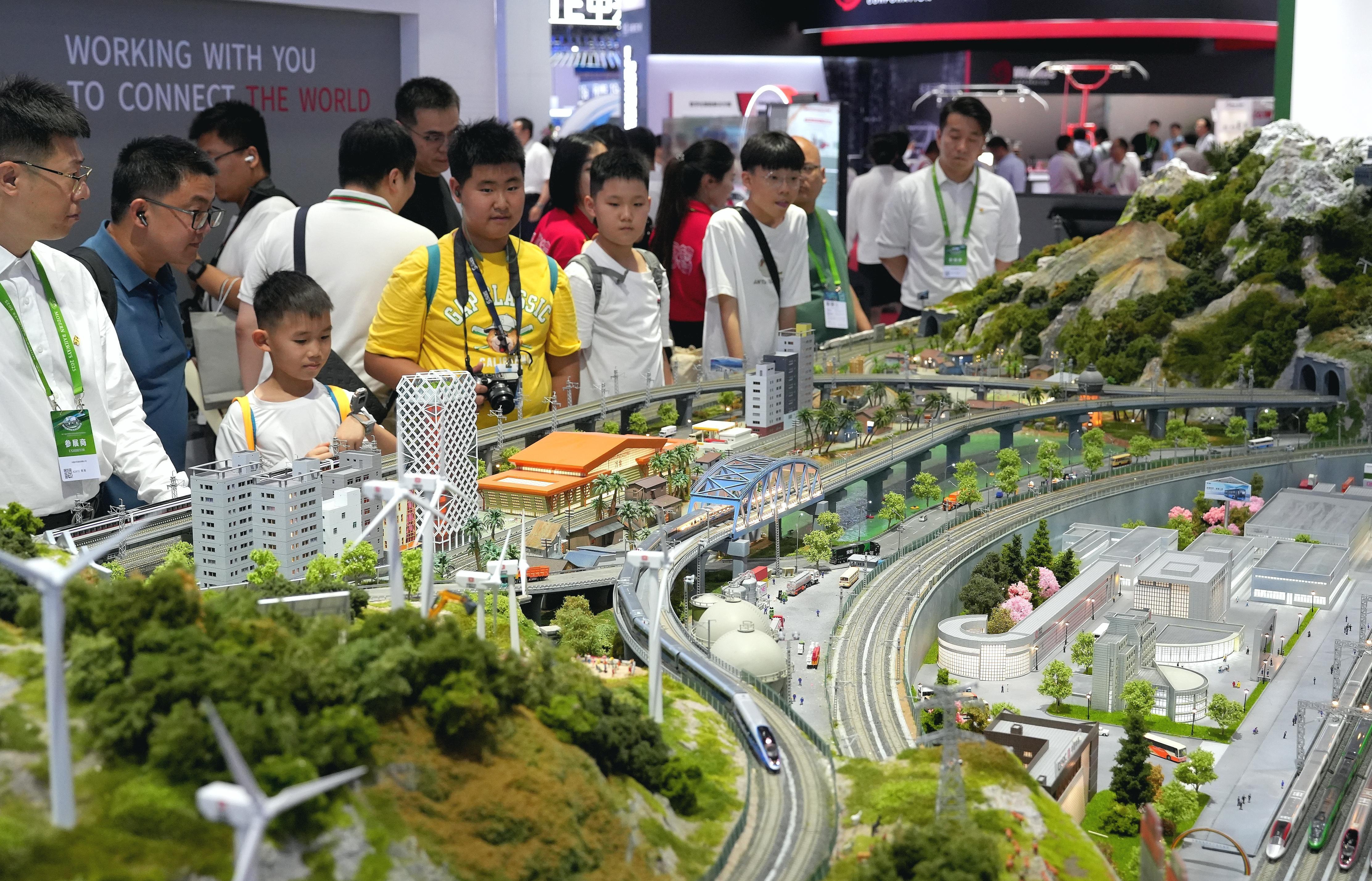 高铁已成为中国自主创新的一个成功范例。在装备展现场,各类微型沙盘精妙复刻着中国高铁的典型成就。