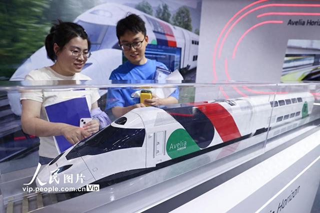 2025年7月8日, 第十七届中国国际现代化铁路技术装备展览会在北京国家会议中心开幕。本届展会以“高速铁路:创新发展让生活更美好”为主题,集中展示世界各国先进铁路技术和装备。陈晓根摄(人民图片网)