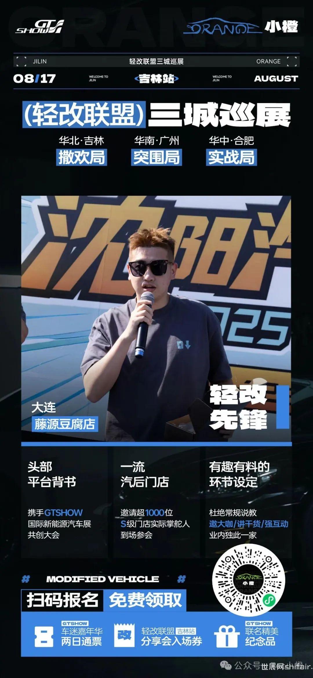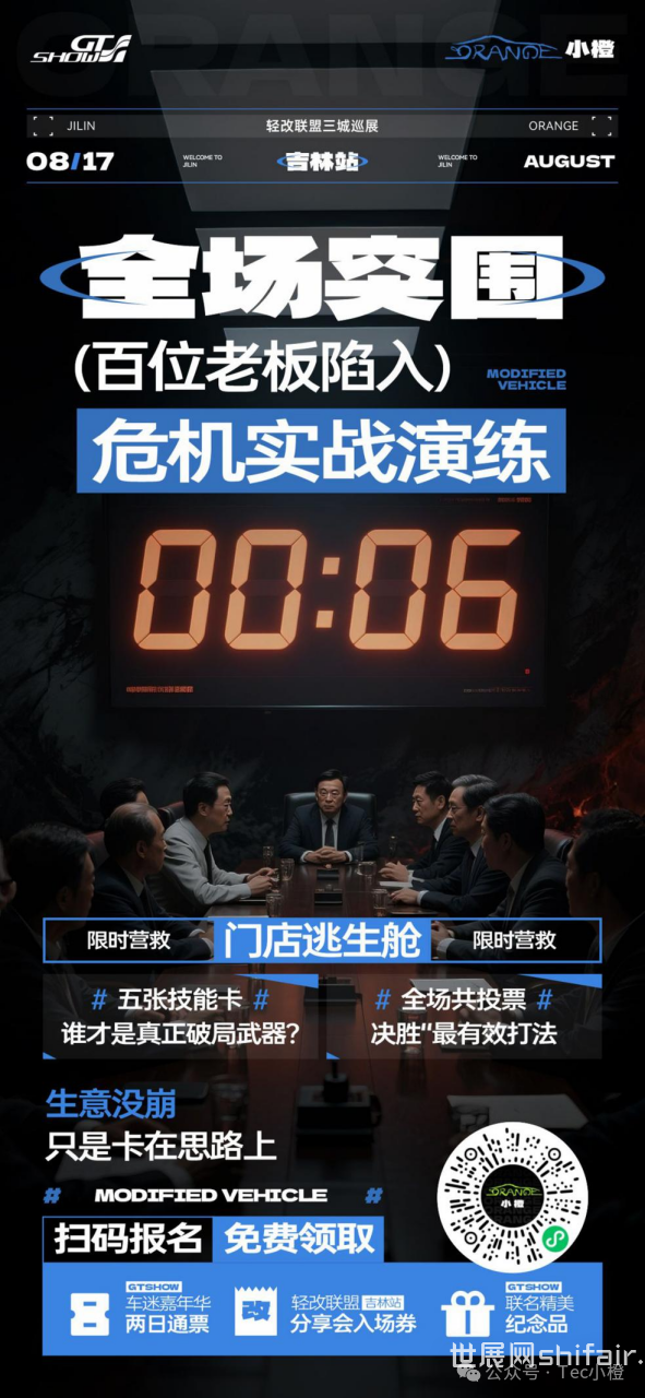 不是参观,是参与|GT Show轻改联盟交流会·吉林站 改装门店经营越来越难,不是错觉,而是现实。 流量焦虑、团队难管、项目难卖…… 到底怎么破?在吉林,这些问题将被搬上台面。 这不是走场子、不是听宣讲—— 是一场改装圈自己开的闭门会。 GT Show 轻改联盟交流会·吉林站,三个核心环节,全场真实交锋。 圈内人,讲圈内事。 8月17日,吉林朱雀赛车场,东北改装圈迎来一次真正的行业聚会。 由GT Show 联合小橙发起的【轻改联盟三城巡展】首站正式落地吉林。我们将邀请200+优质门店老板、头部大咖、行业从业者,围绕真实的经营难题和改装趋势展开深入碰撞。 三大重磅互动环节,精彩一触即发: 01|全员辩论赛:观点对决,立场自由切换! 热点辩题,现场揭晓! 老板们自由站队、激烈开杠、两轮投票,看看谁的观点能说服全场? 不仅有话语权,还有“掌局权”! 02|门店逃生舱:突围演练,拼的是解决力! 面对“业绩下滑、人心涣散”等真实难题,每人手握一张技能卡,限时提出破解方案,现场投票评选最强打法! 03|快问快答挑战:脑速挑战,干货输出! 三大奖项现场揭晓: 年度创新突破改装门店 年度最佳特色改装门店 年度人气改装门店 优秀门店将获得【官方定制奖杯 + 联合官宣曝光】 活动信息: 时间:2025年8月17日(星期日)14:00 地点:吉林朱雀国际赛车公园气膜馆 报名方式:扫码填写报名表,免费参与轻改联盟交流会 所有参会门店可获: GT Show车迷嘉年华吉林市站门票 门店奖项申报资格 精美定制礼品一份 本场活动为轻改联盟三城巡展首站后续将落地广州、合肥,覆盖华南、华中改装核心圈层,联合释放汽后圈层势能,敬请期待! 部分到场嘉宾: 下场活动预告: