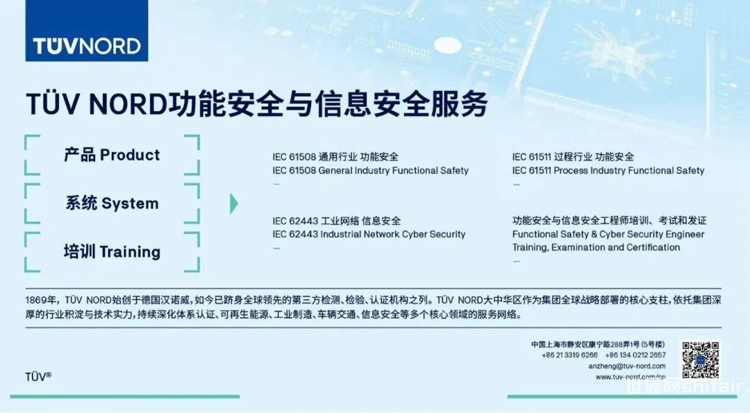 2025年8月13-15日,第33届中国国际测量控制与仪器仪表展览会(原“多国仪器仪表展览会”,MICONEX2025)将在长沙国际会展中心举办。TüV NORD将隆重亮相本届展会,欢迎前来交流! 展会时间 2025年8月13日-15日 展会地点 湖南·长沙国际会展中心 TüV NORD 展位 E1馆 A区 A1159 展位活动精彩预告 《TüV北德功能安全论坛》白皮书正式发布!现场扫码参与活动即有机会赢取纸质精装版。 (在“TUV北德工业服务”公众号后台留言,领取电子版功能安全白皮书) 该白皮书以功能安全近十年发展进程为线展开,深入浅出地介绍了功能安全的基本概念、标准和应用方法。它不仅涵盖了ISO 26262和IEC 61508等关键标准,还通过实际案例分析帮助读者理解如何在石化、汽车等不同领域实施功能安全。 专业的功能安全与信息安全服务 TüV NORD功能安全服务主要从事涉及功能安全服务的认证、评估、培训等领域,行业遍布各行各业,包括航空航天、轨道交通、汽车电子、核电仪控系统、过程自动化安全仪表系统(SIS)、阀门、执行器、工业机器、电梯扶梯、智能电网等。 目前,TüV NORD大中华区的功能安全与网络(信息)安全服务认证服务内容主要包括:功能安全与网络(信息)安全培训、项目技术评估、功能安全与网络(信息)安全、功能安全与网络(信息)安全认证、功能安全工程师认证等业务。 TüV NORD功能安全服务方面的专家曾参与OPEN Alliance 技术联盟、NA 052 DIN汽车工程标准委员会、ISO/TC 22/SC 33工作组、FlexRay Consortium车载网络标准、AutoSAR、SAE International、SOTIF等标委会或技术组织,曾多次参与IEC 61508、ISO 26262、IEC 62061、ISO 13849、IEC 62443、ISO 21434、ISO 21448等功能安全与网络(信息)安全国际标准的编写工作,具有安全相关系统的多年研发经验和对标准的精确理解。各领域的知名企业均选择了TüV北德作为合作伙伴,并且对TüV北德的专业及负责给予了高度评价。 此外,在工业制造领域,TüV NORD为设备制造商、工程公司和业主提供覆盖通用制造业、重型机械、电力设施、石油天然气、化工和氢能全生命周期的检验与认证服务,助力产业升级与技术创新。 8月13-15日,相约长沙国际会展中心,TüV NORD诚邀行业同仁莅临E1馆A区 A1159展位,与TüV NORD的工程师团队面对面,共话行业前沿趋势,携手共驱技术革新与产业跃迁。 关于TüV NORD(TüV北德) 1869年,TüV NORD 始创于德国汉诺威,从最初的 “蒸汽锅炉检验协会”,逐步发展成为德国官方授权的技术服务公司,如今已跻身全球领先的第三方检测、检验、认证机构之列。TüV NORD集团业务遍及全球100多个国家和500多个地区,拥有逾15,000名员工。在150余年的发展历程中,TüV NORD伴随人类的每一次技术革新,坚守安全使命,致力于打造一个更安全的世界。我们始终是安全、质量、中立与独立的代名词。 TüV NORD大中华区作为集团全球战略部署的核心支柱,依托集团深厚的行业积淀与技术实力,持续深化体系认证、可再生能源、工业制造、车辆交通、信息安全等多个核心领域的服务网络。我们不仅致力于帮助企业满足中国市场的严格要求,更凭借对国际市场的深刻理解以及全球化网络资源,为客户提供全球市场准入、“一检多证”的一站式服务。 相关业务 敬请联系: 郑威 电话:657 微信:zhengwei_SIL 邮箱: 长按关注我们