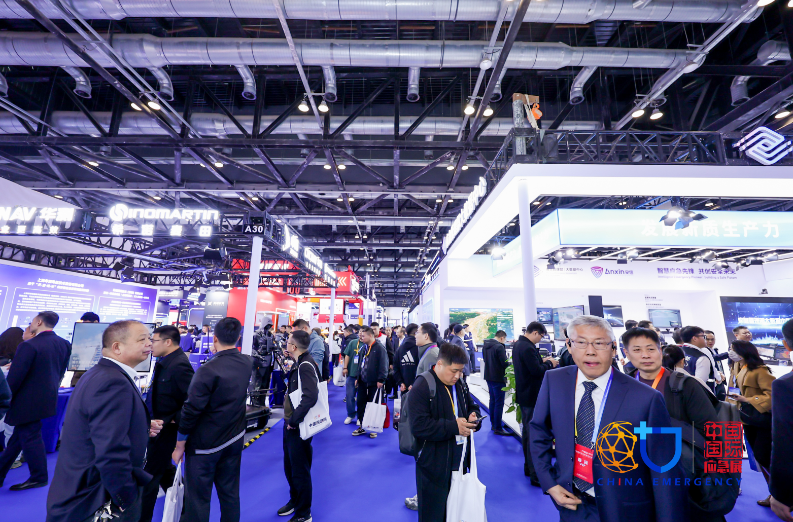 上届回顾11月13日,作为“一带一路”自然灾害防治和应急管理国际合作机制的重要举措,2024中国国际应急管理展览会在北京国家会议中心开幕。展览会以“科技兴安、 智慧应急”为主题,重点展示应急管理信息化、消防救援、防灾减灾救灾、安全生产及事故救援等领域的技术装备和应用场景。展览面积2.5万平方米,主要展示应急管理信息化、消防救援、防灾减灾救灾、安全生产及事故救援四个领域的技术装备和应用场景。约200家中外企业和科研单位参展,主要包括中国兵器工业集团、国家电网有限公司、国家能源投资集团、中国电信集团、中国联合网络通信集团、中国移动通信集团、新兴际华集团等中央企业;中国铁塔股份有限公司、中国煤炭科工集团煤炭科学研究总院有限公司、中海油安全技术服务有限公司、中国船舶重工集团应急预与救援装备股份有限公司、中国电子科技集团第54研究所等大型国有企业和中央企业下属公司;应急管理部大数据中心、华为、中兴、大疆、海能达等智慧应急领域的领军机构和企业;徐工消防、福建侨龙、湖南华汛、迪沃科技、海德馨、明光浩淼、海洋王等综合救援装备制造企业;江苏省徐州市、湖北省随州市等应急产业聚集区;以及梅思安、德尔格、安思尔、普利沃、海创、雷克兰等国外知名企业。本届展览会展期三天,11月13日举办开幕式,应急管理部、科学技术部、北京市人民政府相关负责同志将出席并致辞。应急管理领域的监管人员、综合性消防救援、安全生产应援等各类应援队伍、企业安全管理人员、相关科研领域专家学者参观展览。