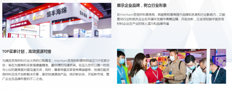 Interfoam上海展将集中展示发泡材料的最新生产技术、设备及发泡材料的新技术、新趋势、新应用等,竭力为发泡材料产业上下游及垂直应用行业打造技术、贸易、品牌展示、学术交流为一体的专业平台,赋能行业可持续发展!
