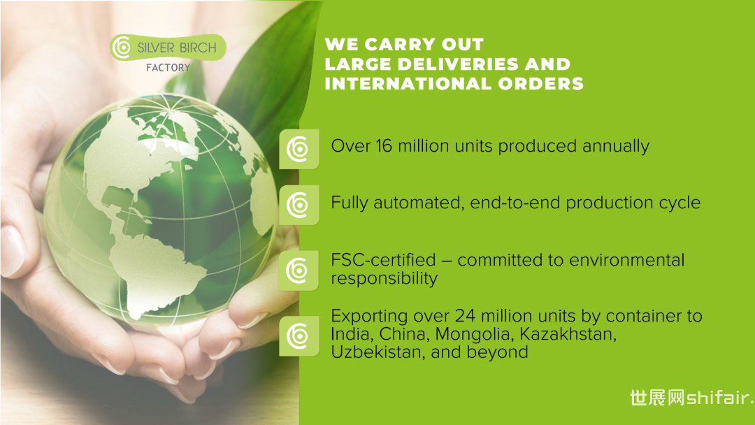 中国冰博会首届参展商 Silver Birch 工厂是俄罗斯克拉斯诺亚尔斯克的全周期木制品加工企业,自 2009 年起专注生态桦木一次性用品生产,具备显著企业优势:作为源头制造商,依托本地桦木资源与全自动生产链,年产能超 1600 万件,运营及产品通过 FSC、LFGB 认证,且有 12 余年行业经验,成熟物流可支撑全球订单,年出口超 2400 万件至中国、印度等多国 产品以桦木为原料,覆盖多品类且特点鲜明:冰棒棍含多尺寸与包装形态,适配自动化生产线;一次性餐具耐受冷热,适配餐饮、户外场景;咖啡搅拌棒适配售货机与咖啡馆,多尺寸适配不同杯高;美容铲专为美容机构设计,支持定制。所有产品边缘光滑安全,还可提供 logo 印刷、包装设计等定制服务 产品展示 聚焦2025年中国冰博会俄罗斯DarTex LLC9月天津期待您的莅临 2025年第27届中国冰博会上,俄罗斯DarTex LLC将展示最新的产品、技术和创新成果,与大家分享行业前沿动态,为参观者带来更多精彩展示。 我们期待着俄罗斯DarTex LLC在 2025 年 9 月 24-26 日的中国冰博会上大放异彩!欢迎各位读者莅临天津梅江会展中心,前往中央大厅-T803展位参观,与俄罗斯DarTex LLC共同探讨合作机会,共同见证行业的发展。 识别二维码并填写所需信息 组委会帮您和厂家对接 阅读原文